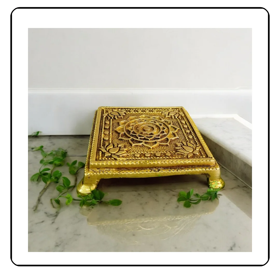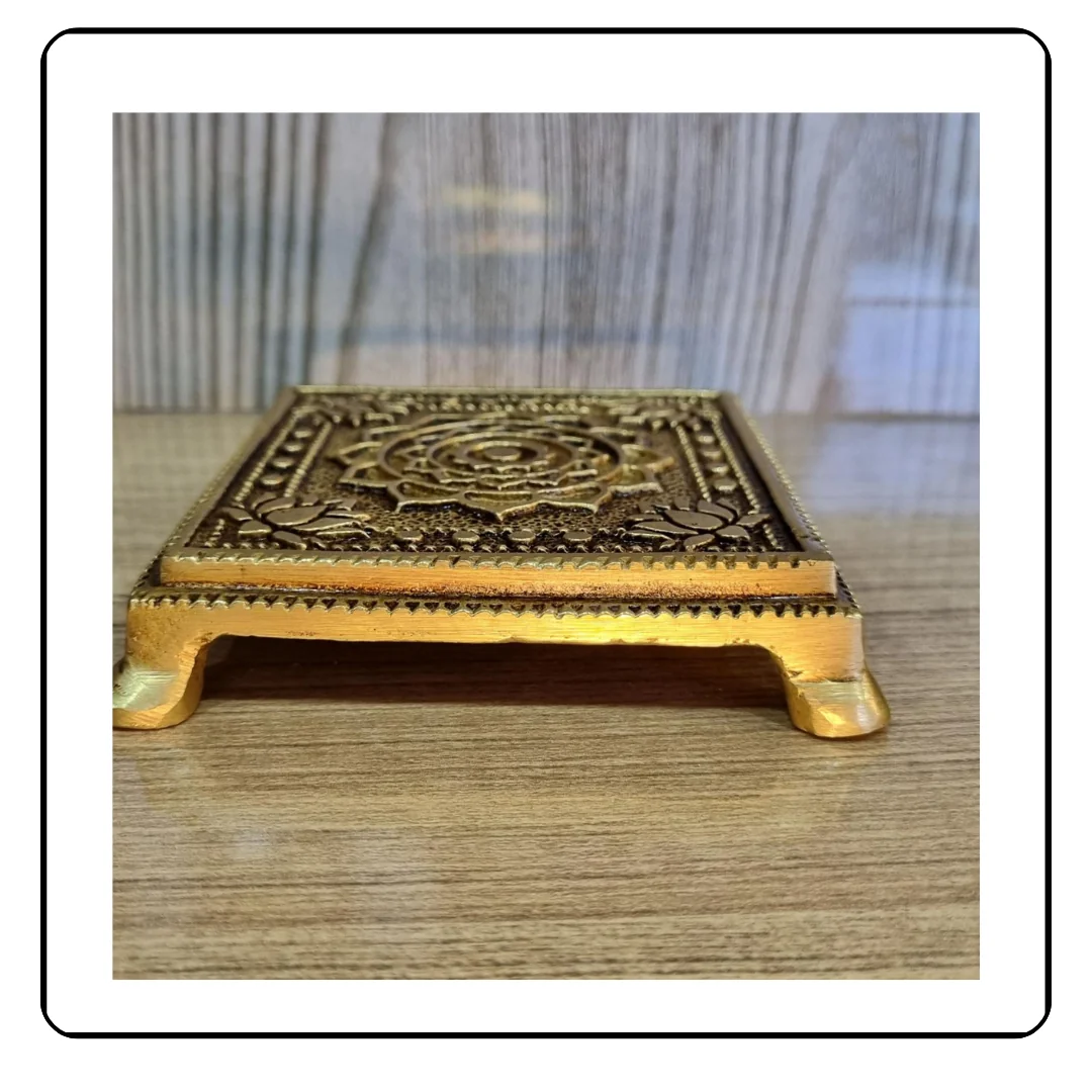 This decorative brass display piece is meticulously designed with intricate detailing and a golden finish, making it a perfect combination of artistry and sophistication.